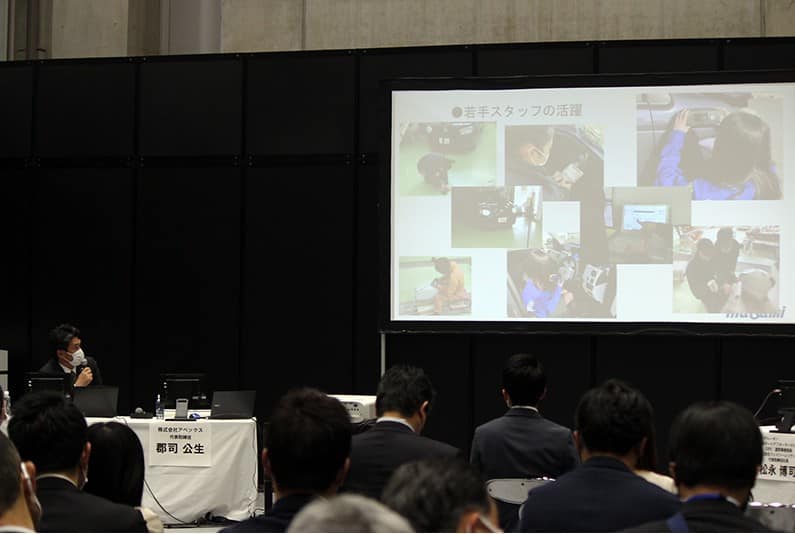 今回は展示会の最終日となる11日に開催された人材セミナーに参加。セミナーのテーマは、「スタッフの採用と定着化への取り組み」(~これからの人材採用と育成のかたち~)で、司会進行はジェイシーレゾナンスの松永博司社長、登壇者はアベックスの郡司公正社長、弊社の中神敏光統括部長の2人で実施。中神統括部長は、弊社で取り組んでいる「新卒採用と教育」について経験上の話をしました。